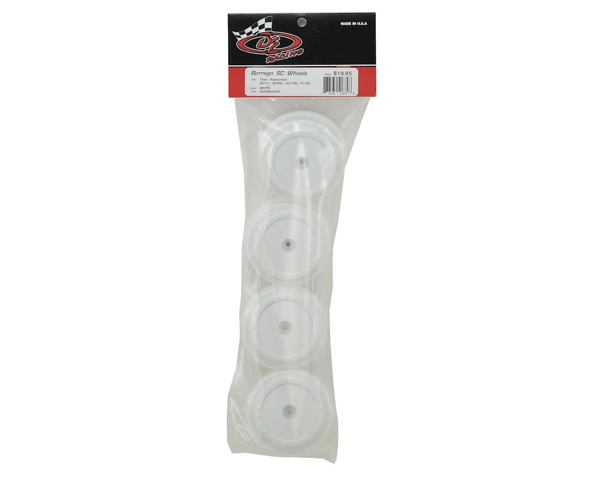 This is a pack of four DE Racing +3mm “Borrego” SC Wheels, and are intended for use with the Associated SC10 4×4 short course truck, as well as the SC10 when equipped with a 12mm hex conversion. DE Racing has developed the first true dish wheel for the Short Course market. Modeled after the 1/10 buggy line, DE’s “Borrego” wheels feature the realistic scale appearance of a beadlock wheel with mud cover. They were also designed for use with DE’s optional sticker disks to provide a greater level of color customizing options.