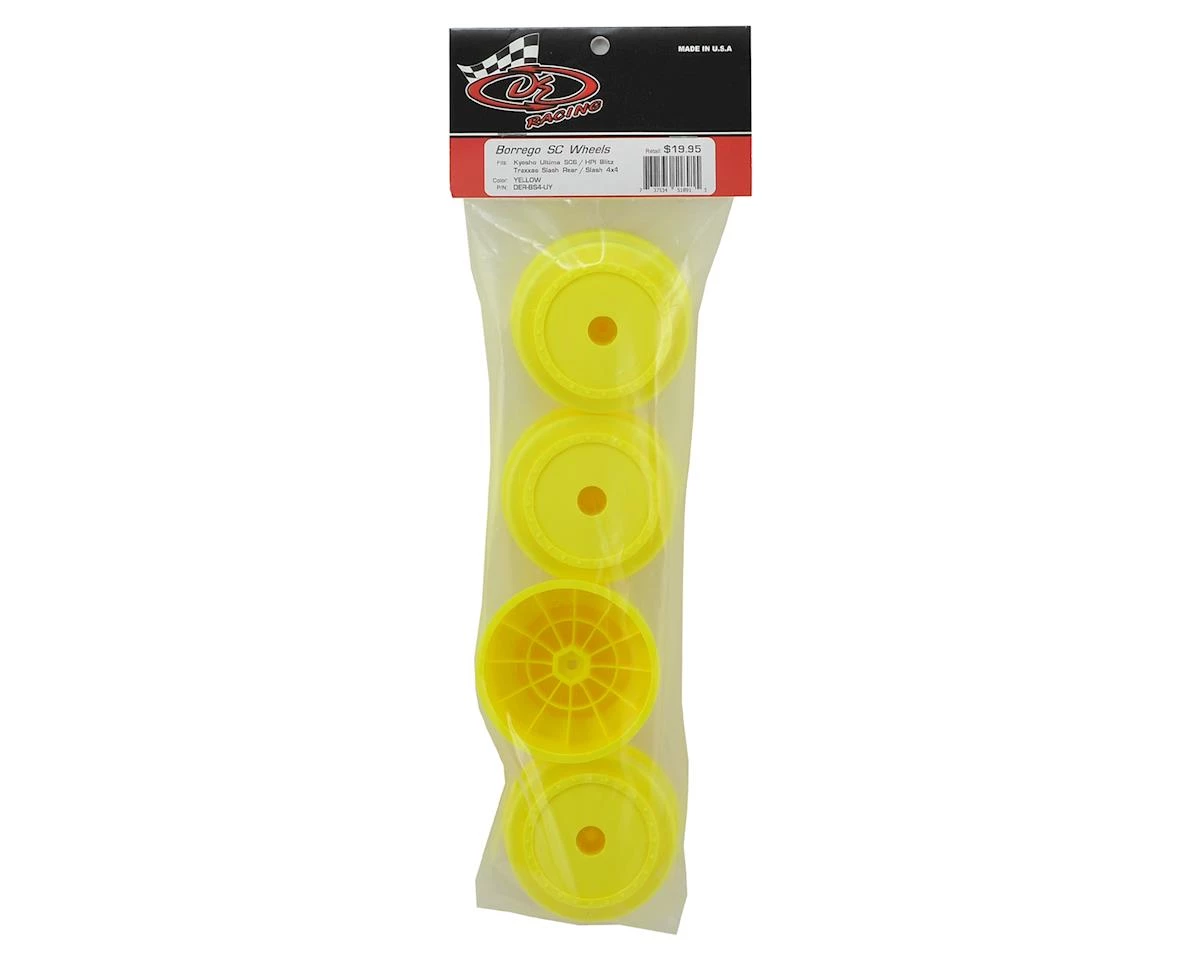 This is a pack of four DE Racing “Borrego” SC Wheels, and are intended for use with any truck that uses a Slash rear offset wheel. DE Racing has developed the first true dish wheel for the Short Course market. Modeled after the 1/10 buggy line, DE’s “Borrego” wheels feature the realistic scale appearance of a beadlock wheel with mud cover. They were also designed for use with DE’s optional sticker disks to provide a greater level of color customizing options.