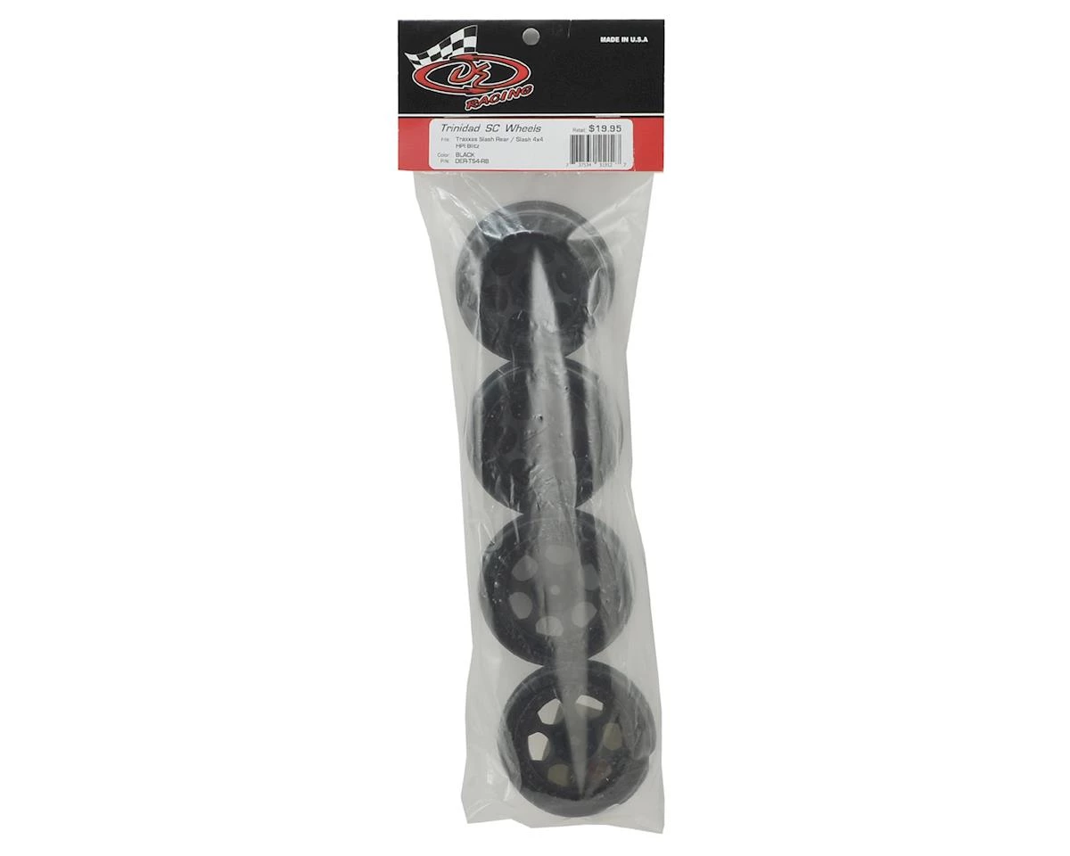 This is a set of four DE Racing Trinidad SC Rear Wheels. These are intended for use on the rear of the Traxxas Slash, as well as the front and rear of the Slash 4×4, the Kyosho Ultima SC, HPI Blitz, and the OFNA/Jammin 4WD trucks. Named after a rugged valley section of the prestigious Baja 500 and 1000 desert races, DE Racing brings you the “Trinidad” SC wheel. These are some of the most detailed and scale wheels available for your Short Course truck. From the bead lock bolts and lug nuts to the seamless integration for the optional Hub Nutz, one look and you’ll agree that these wheels form a package that is pure eye candy.