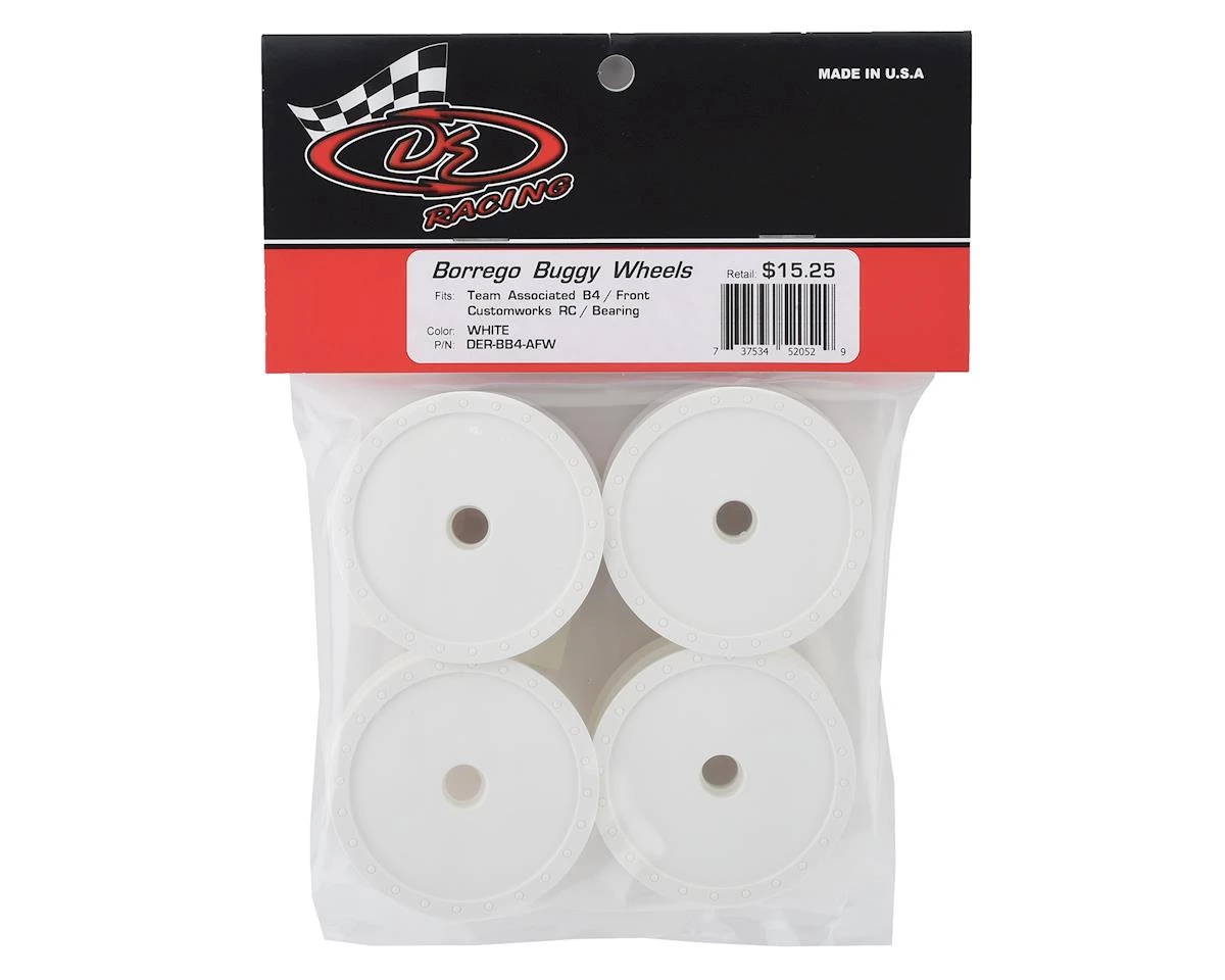 This is a set of four DE Racing “Borrego” 2.2 1/10 Buggy Front Wheels, and are intended for use with the Associated B4, as well as any other 1/10 buggy that uses the same wheel type. Born from the grueling demands of the Baja 1000 and forged by the wheel to wheel action of Crandon, DE Racing brings the RC world the “Borrego” buggy wheel. Constructed to satisfy the most discriminating racer while offering scale realism that has never before been available for 1/10 buggies, the “Borrego” wheel is sure to be a new favorite for many drivers.