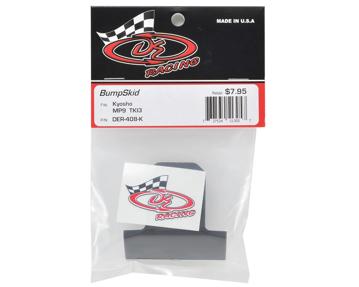 This is an optional DE Racing BumpSkid for the Kyosho MP9 TKI3 buggy. This product combines a superior front skid plate with a refined front bumper to create the ultimate in protection, performance, and styling. DE Racing has always said they believe a car’s chassis is not a wear item. The “BumpSkid” further reinforces that concept by providing high performance protection for the front of your expensive 1/8 scale buggy chassis.