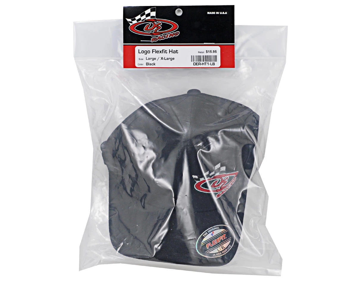 This is a DE Racing Black Flexfit Baseball Cap.
