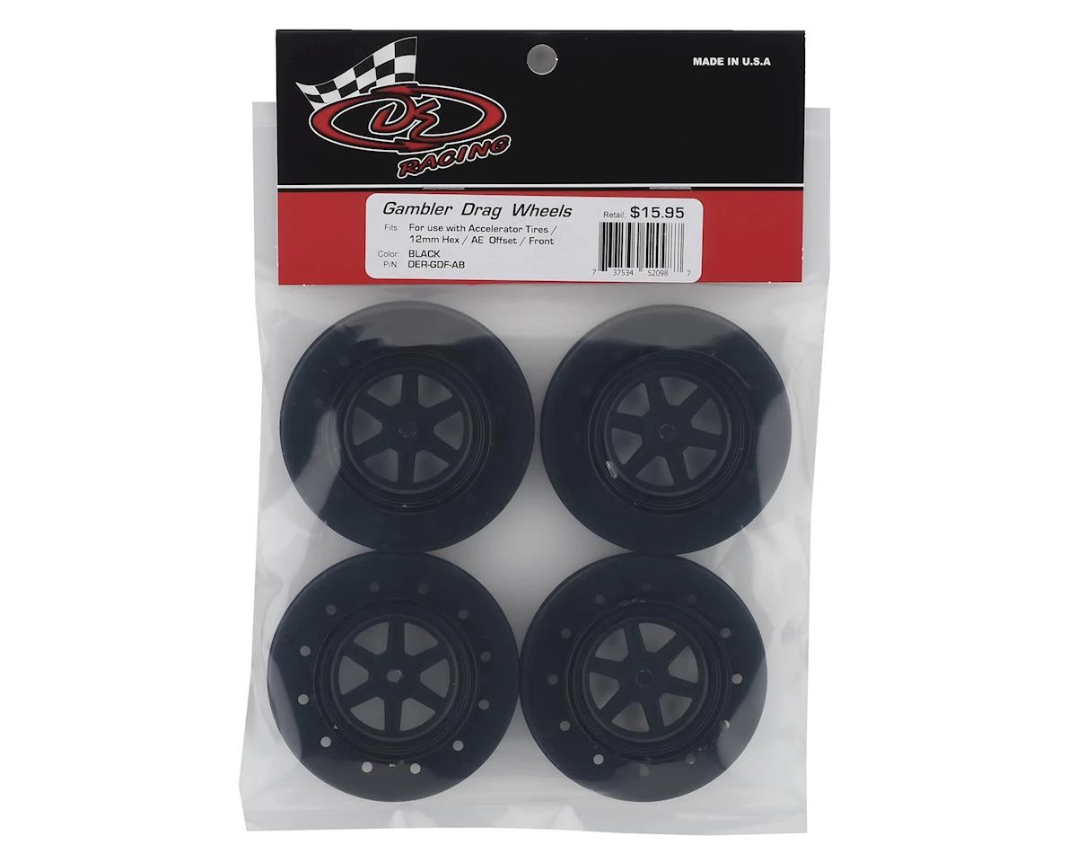 DE Racing Gambler Drag Racing Front Wheels (Black) w/12mm Hex