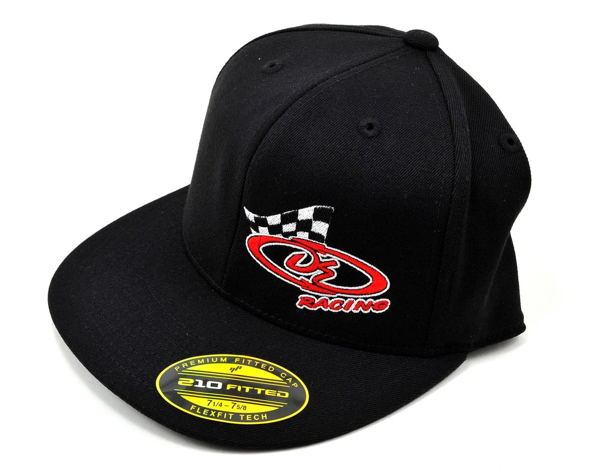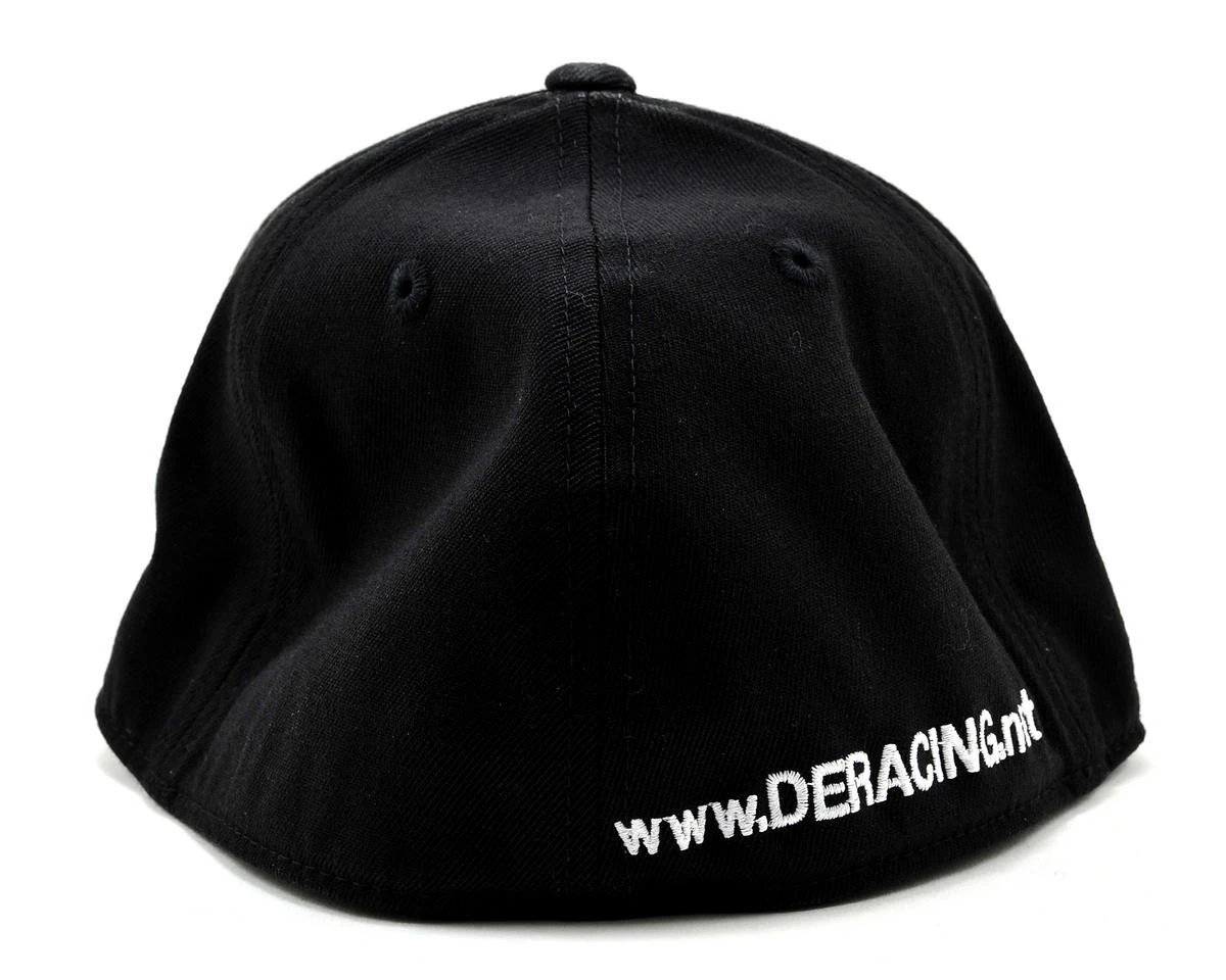 This is a DE Racing Logo Black “Flatbill” FlexFit Cap. Genuine Flexfit hat with DE Racing logo on front and web address on back.