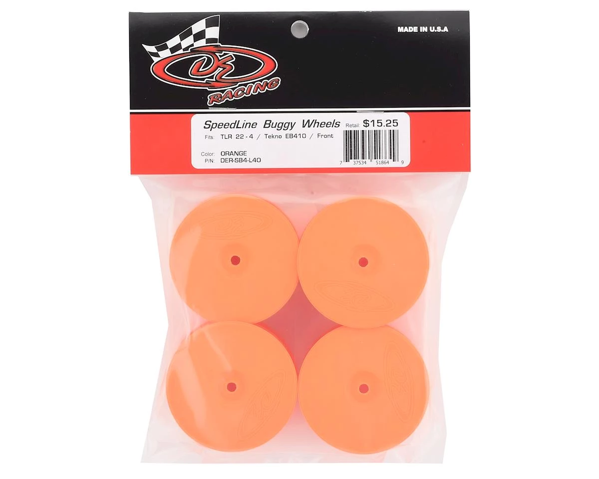 DE Racing “Speedline” 2.2 4wd Front Buggy Wheels for the Losi 22-4 and Tekno EB410 blend a traditional style dish wheel to the precision and durability DE Racing is known for. The Speedline series wheels make a statement to the racing community even larger than the logo on the face. Features include a channel for easier tire gluing, start holes for optional venting, and improved wheel flex to optimize traction and handling. Package includes four wheels.