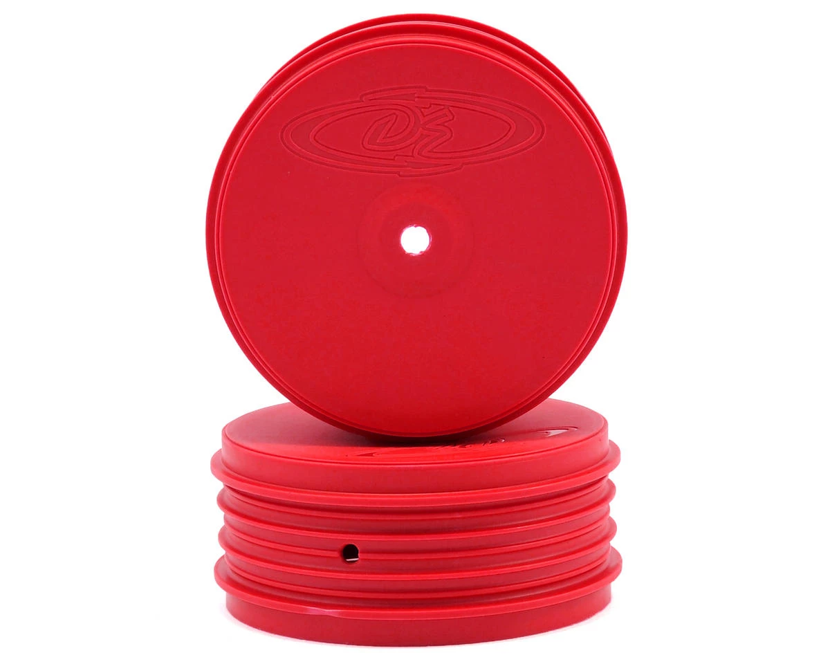 This is a pack of two DE Racing “Speedline PLUS” 2.4 1/10 4wd Buggy Front Wheels. These front wheels are designed to fit the TLR 22-4, Kyosho ZX-6, Hot Bodies D413 and other 1/10 4wd buggies that use a 12mm Hex front wheel. Additionally, these wheels can be used with the Associated B44 family of buggies when used with the optional Associated 12mm Front Axle Drive Hex (ASC9955).