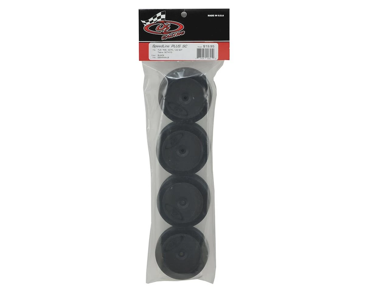 This is a pack of four DE Racing “Speedline PLUS” SC Wheels. These wheels are designed to fit the front or rear of the Losi 22SCT and TEN-SCTE models, as well as the Tekno SCT410.