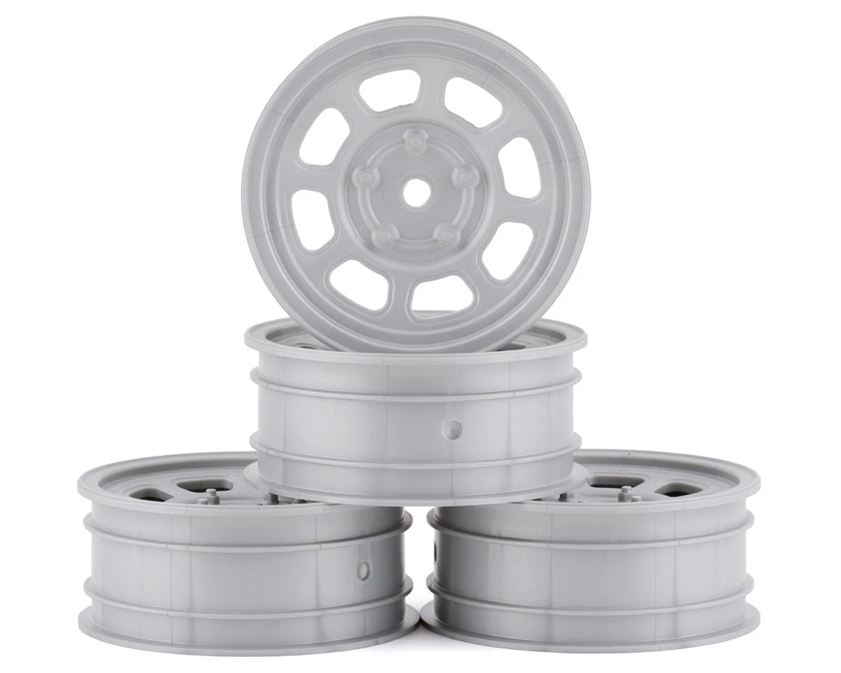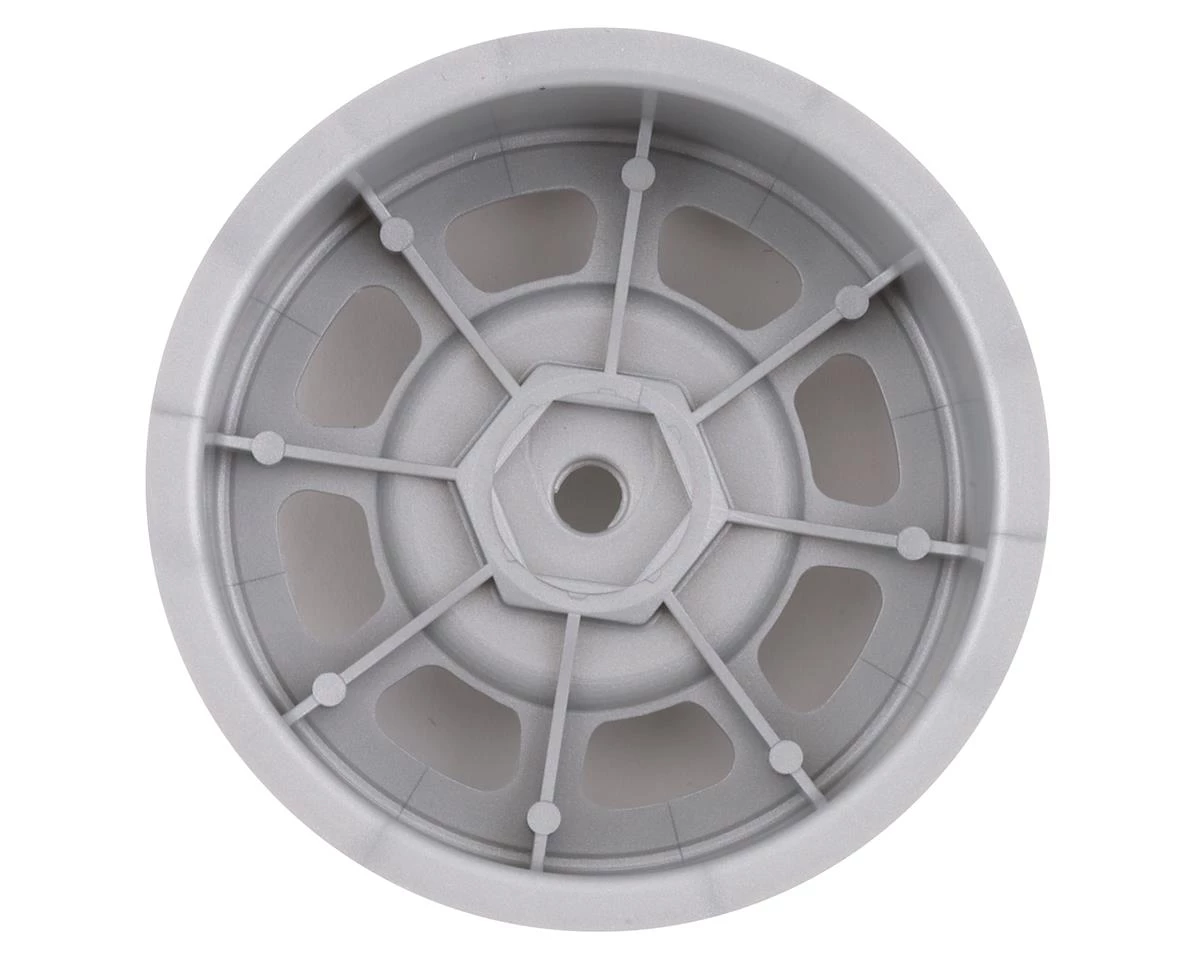 DE Racing Speedway Front Wheels are a great way to help keep your oval car rubber side down. These wheels offer a classic oval look, are available in black, white, or silver color options, and fit Associated B6 or Custom Works Outlaw 4/Rocket 4 applications. Package includes four wheels.