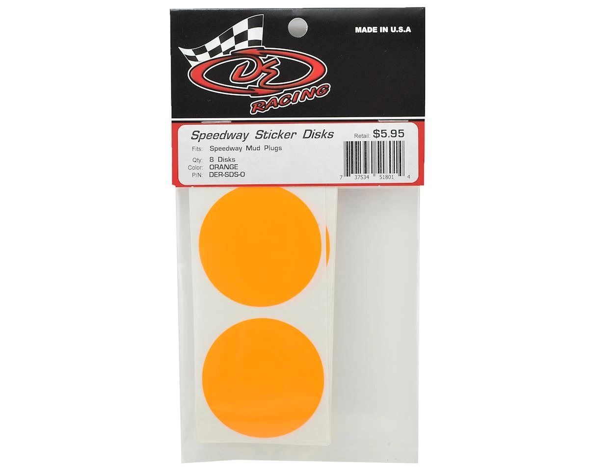 DE Racing Speedway Mud Plug Sticker Disks are the perfect accessory to add a custom touch to your DE Mud Plug (DER-DOS-MP) equipped wheels. Package includes eight orange sticker disks.