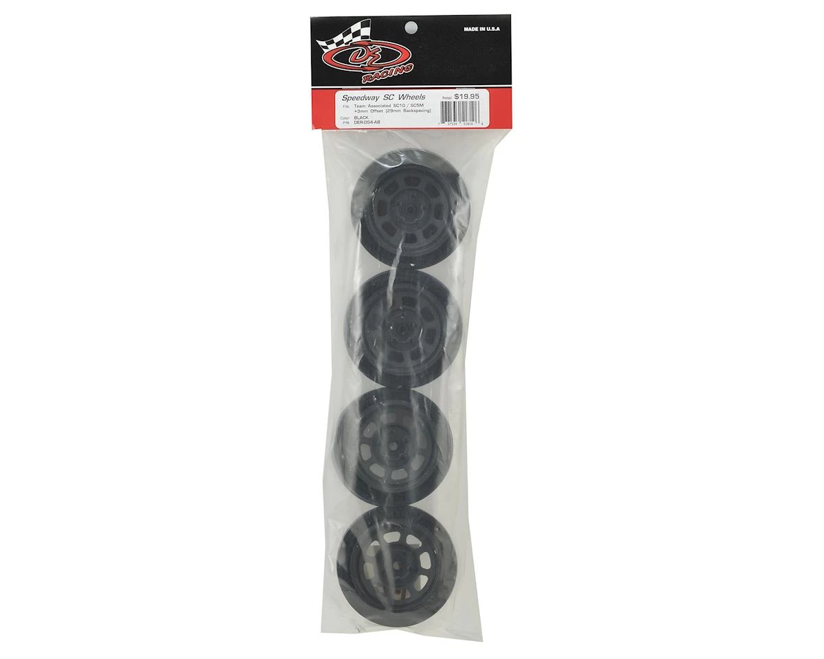 DE Racing Speedway SC Dirt Oval Wheels (Black) (4) (+3mm Offset/29mm Backspace) (SC10/SC5M) w/12mm Hex