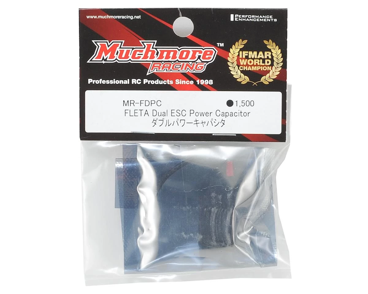 The Muchmore Racing FLETA Dual ESC Power Capacitor is a dual power capacitor based on the latest LiPo technology and features the lowest possible low impedance and even more power with linear throttle feel.