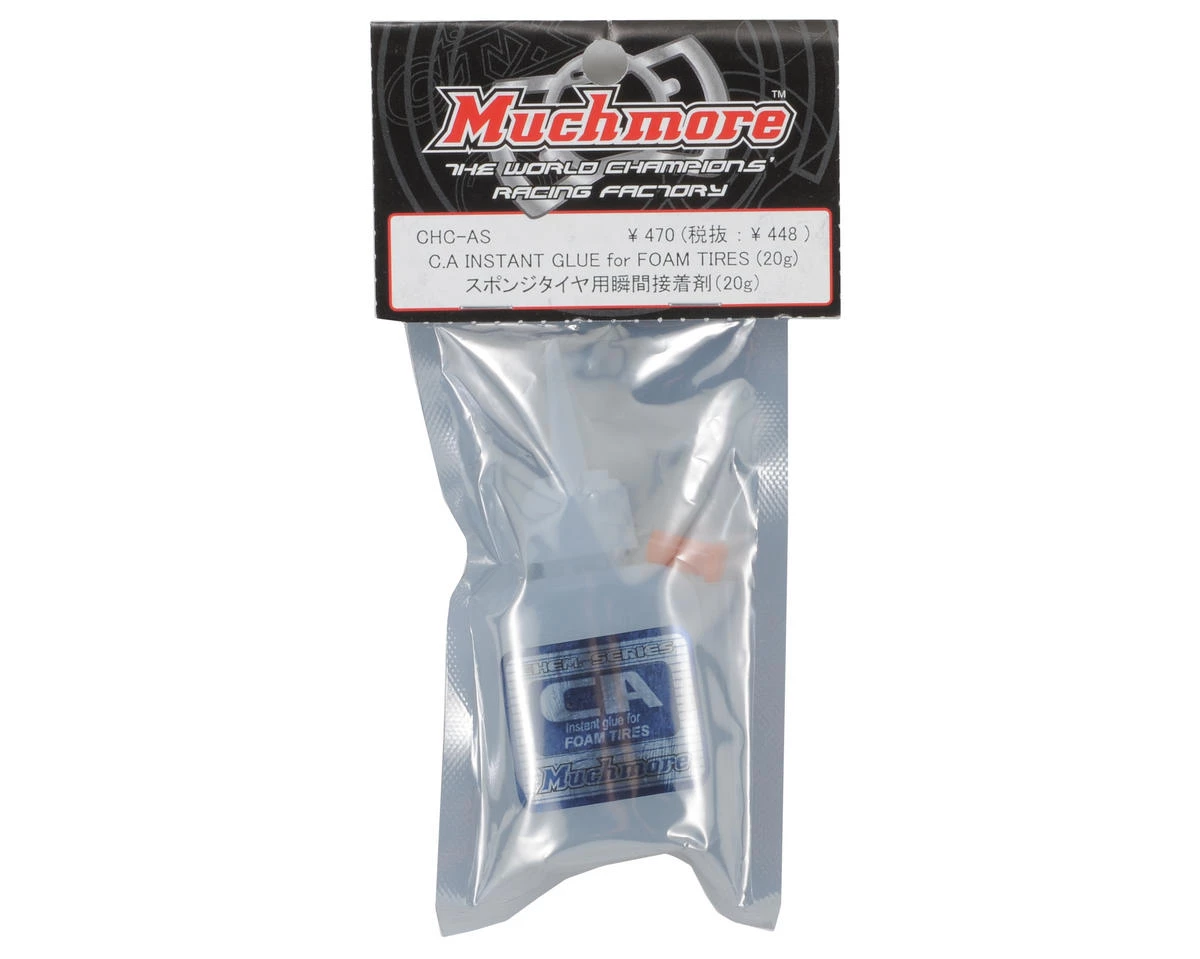 This is a twenty gram bottle of Muchmore Racing Instant CA Glue and is intended for use with Foam Tire applications.