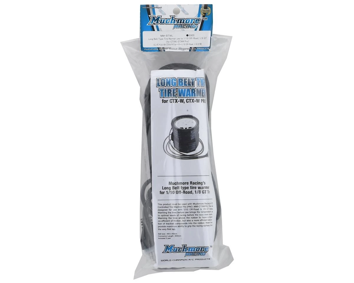The Muchmore Long Type Tire Warmer Belt was developed for 1/10 off road and 1/8 scale GT class applications. These warmers were designed for use with the Muchmore IC Controlled Tire Warmer (MMRMM-BTWL), and feature a 440mm long, 60mm wide surface area, and 800mm long connector wires.Â