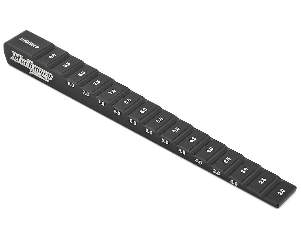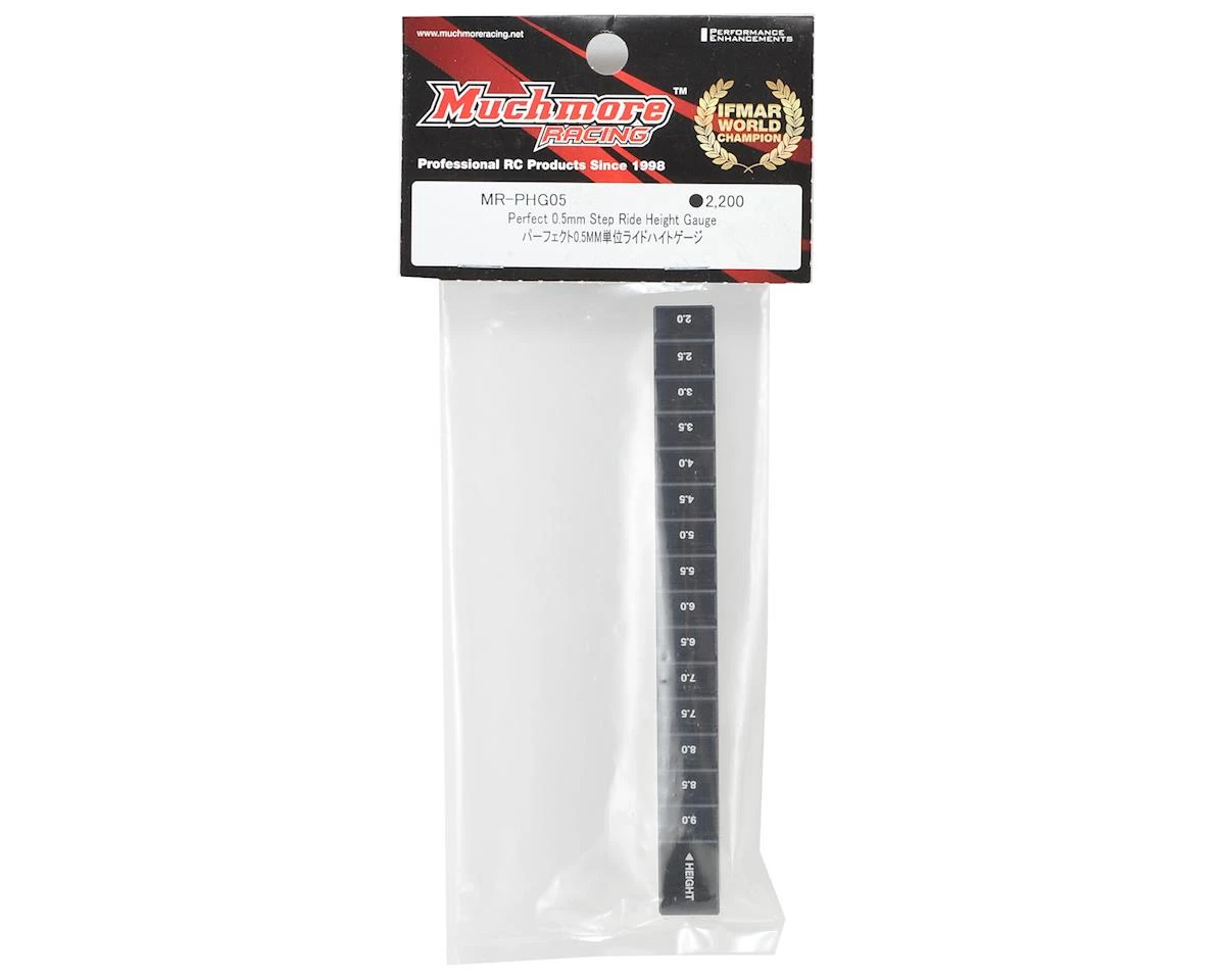 The Muchmore Racing Perfect 0.5mm Step Ride Height Gauge is a precision machined gauge that will allow you to measure between 2.0mm and 9.0mm settings in ultra fine .5mm increments.Â