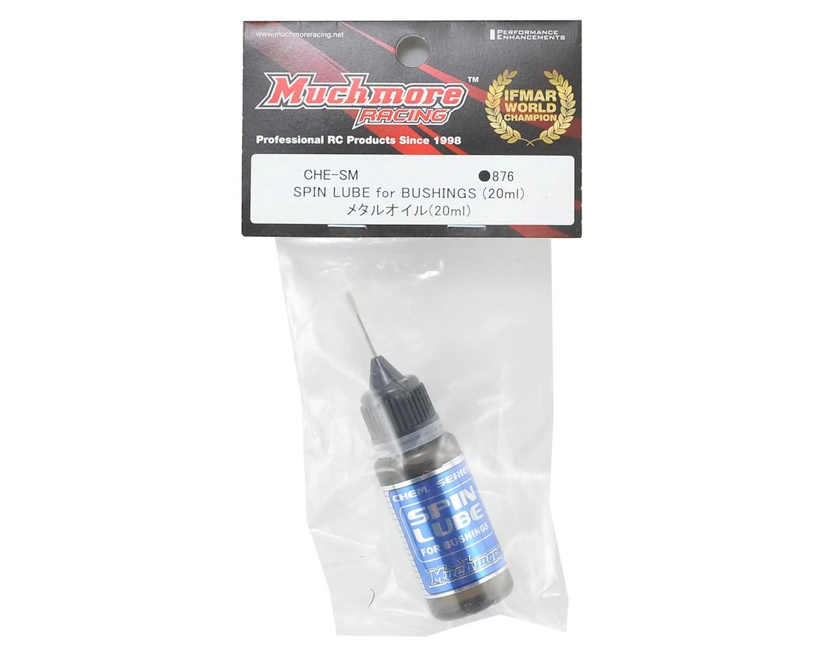 This is a 20ml bottle of Muchmore Racing “Spin” Bushing Lube. Spin Lube is packaged in a squeeze bottle, with a applicator needle & cap. Spin Lube minimizes wear of bushings and provides smooth, consistent operation.