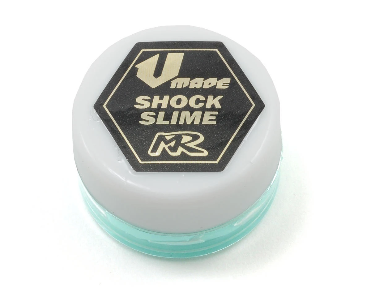 This is a five CC container of Muchmore Racing V Made Shock Slime. This highly polymerized compound is used on silicone shock o-ring seals and helps to prevent leakage and extend the useful life of shock o-rings.Â